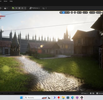 We divided the work into map and location creation, mechanics, models, and quests. For half of the development time, I focused on building the map, but I also helped each of my teammates with their tasks along the way. I created the main menu, served as both the voice and face of our main character, planned the core loops in our storyline, participated in testing combat and mechanics, and optimized the game (which, let’s be honest, didn’t go perfectly—but we don’t talk about that). I also recorded all the cutscenes featured in the gameplay, along with countless other smaller tasks.